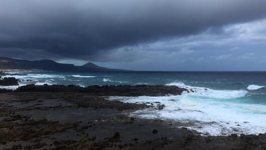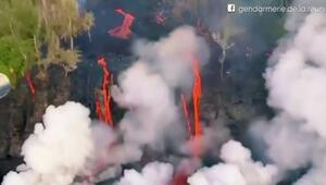 Lavastrom verdampft Meeresküste auf La Réunion